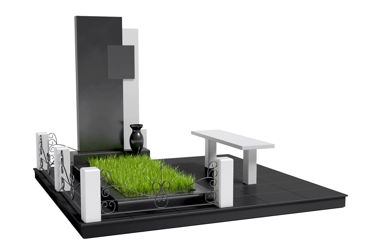 Ключевой элемент — стела Тумба, цветник или надгробная плита Портрет — гравировка, стекло, керамика Облицовка из натурального камня Цоколь и ограждение из гранита Столики и скамейки Вазы и лампадки из натурального камня Скульптуры и бронзовые элементы